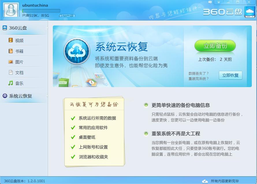360云盘除了提供最基本的文件上传下载服务外,还提供文件实时同步备份功能,只需将文件放到360云盘目录,360云盘程序将自动上传这些文件至360云盘云存储服务中心,同时当在其它电脑登录云盘时自动同步下载到新电脑,实现多台电脑的文件同步。