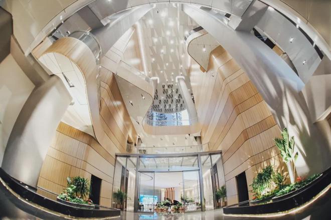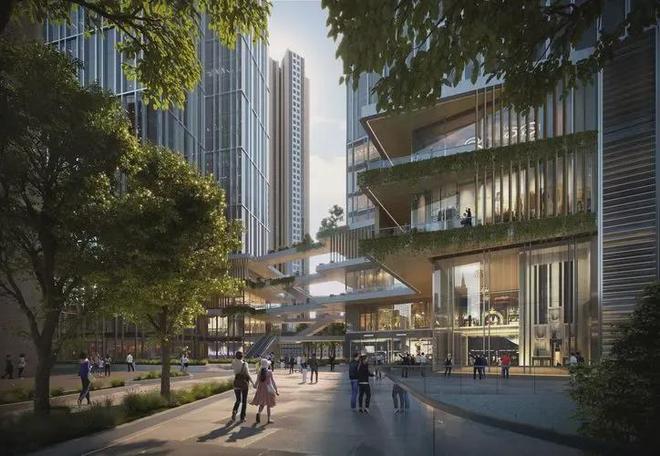 考虑到深圳是一个充满活力的城市。Aedas团队以城市舞台为核心规划概念,让项目公共空间以一种更为开放的姿态去接纳城市,为城市注入更多活力。建筑造型上,裙房空间采用了螺旋布局,为不同的公共文化层打造连续的空间体验。塔楼体块设计为弧形收边,以独特舒展的曲线建筑轮廓,与城市界面和谐相融。