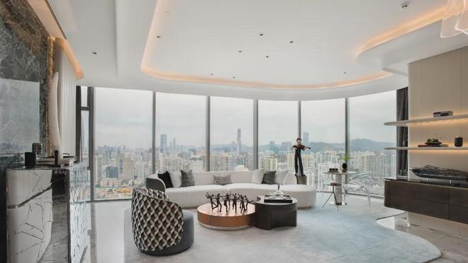 方胜纹双核心筒的设计使得整栋建筑更加高效和私密,并实现了双专梯电梯入户,为塔尖人群高效的工作和私密的生活而服务。转角处曲线设计,拓宽了整个建筑界面,使得建筑拥有270°转角无柱开放式观景视野。是塔尖人群拥揽深港的极佳观景台,足以盛放您帷幄城市的雄心。