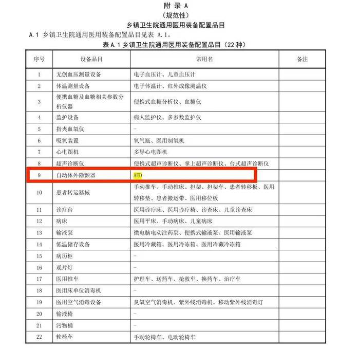 国家卫生健康委员会2025年3月29日发布的《乡镇卫生院医用装备配置标准》(WS/T 843-2025)也将AED纳入乡镇卫生院通用医用装备的基本品目,为AED在农村地区的普及提供了政策支持。
