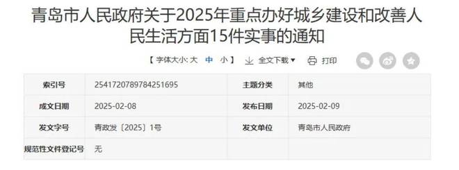 《青岛市人民政府关于2025年重点办好城乡建设和改善人民生活方面15件实事的通知》
